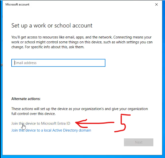 Do NOT enter your email address yet! Instead, click the link below to “Join this Device to Microsoft Entra ID.