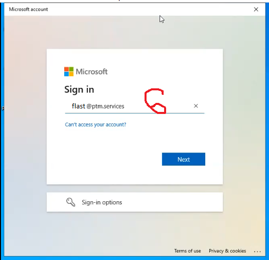 Now you can enter your PTM email address, usually first intial last name @ptm.services.
