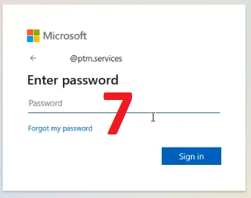 You can enter your password for the @ptm.services account here or, if you don’t know it, click the link for “Forgot my password”.